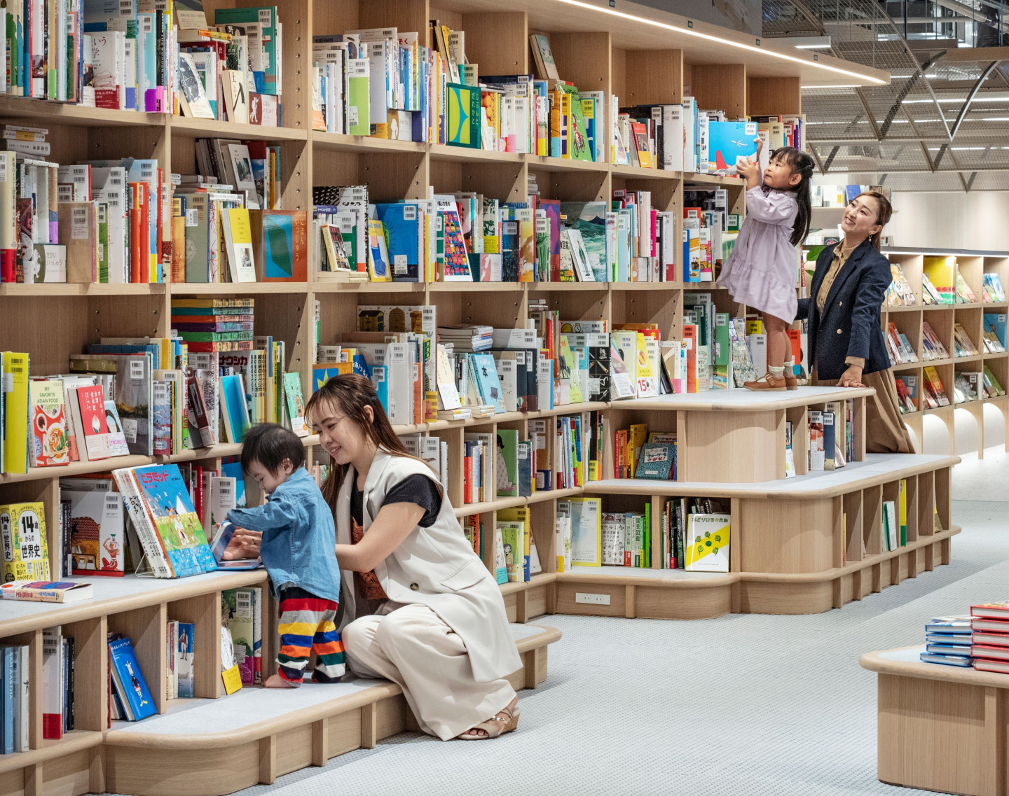 例えば、無料エリア“ときどきやま”もしかり。テーマは「子ども、ときどき、大人」なのだが、「星」を主軸にした棚には、図鑑や絵本のすぐ隣に、星が登場する大人向けのエッセイや小説が並んでいる。世代を超えて分かち合える選書と配置が実に見事だ。登って本を探せるステップ付きの書棚も、遊び心を感じさせる。