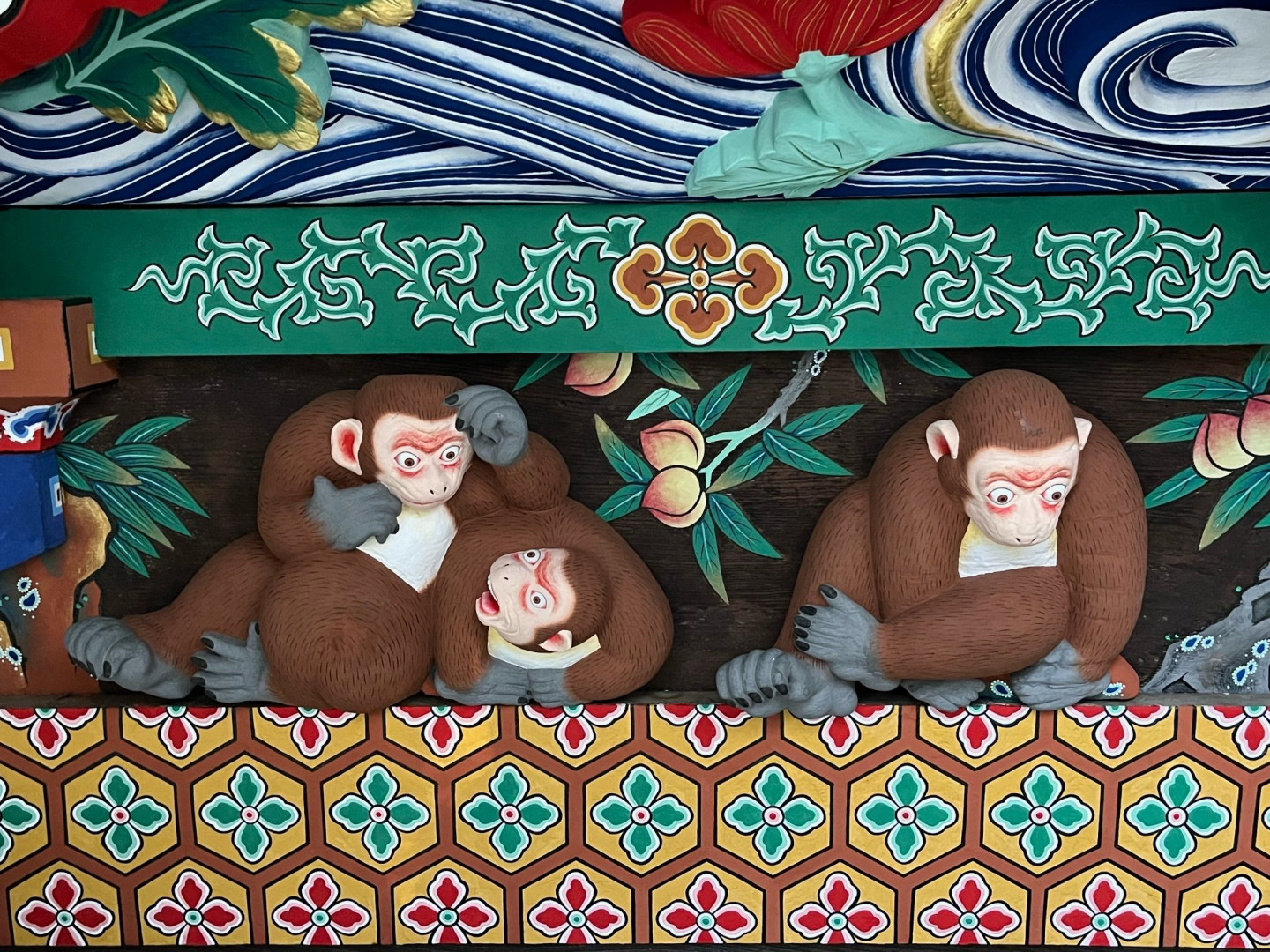 元気いっぱいな三猿など四方に施されたご利益ある彫刻も必見