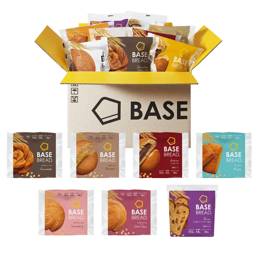 そんなときにおススメなのが、1食(2袋)で1日に必要な栄養素の1/3がバランス良く補える、BASE FOODの「BASE BREAD」シリーズ。