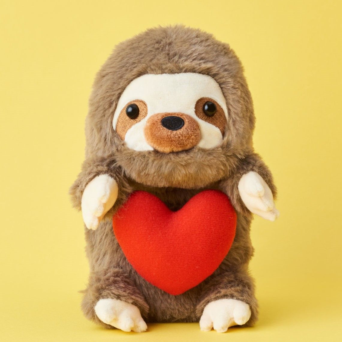 「ふんばるず」自身もちょっぴり猫背。愛らしい姿で学びビトをサポート♡ 「ふんばるず(Regular)ナマケモノ」 W16 × D14× H21cm 140g 2,970円/ドリームズ (※写真は構造の説明用です。実際のハートのクッションはぬいぐるみのお腹の中に内蔵されています。)