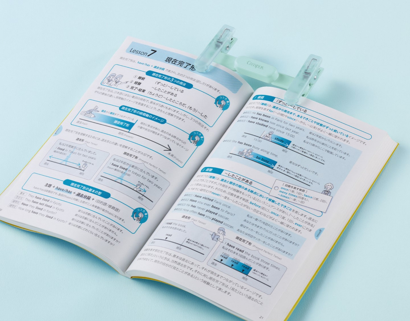「開いたページをしっかりキープし、使い終えたらコンパクトに」。そんな理想を形にした、まさに「メモ勉」の強い味方です。