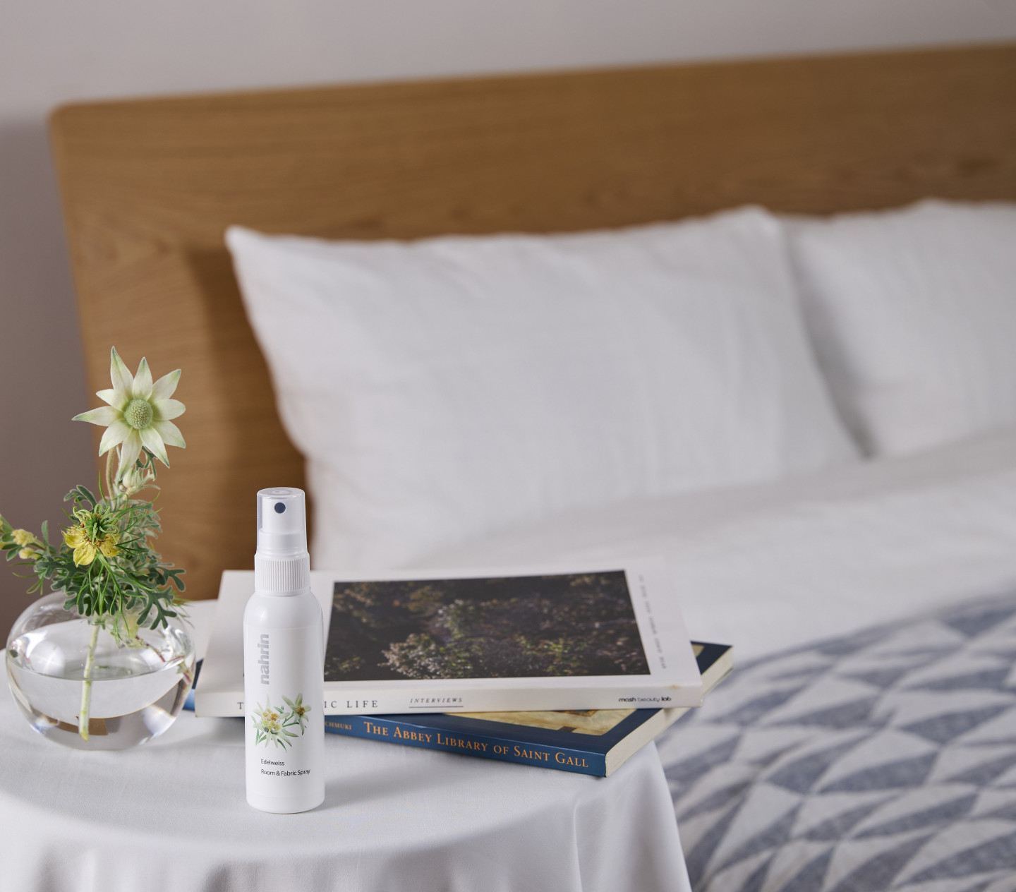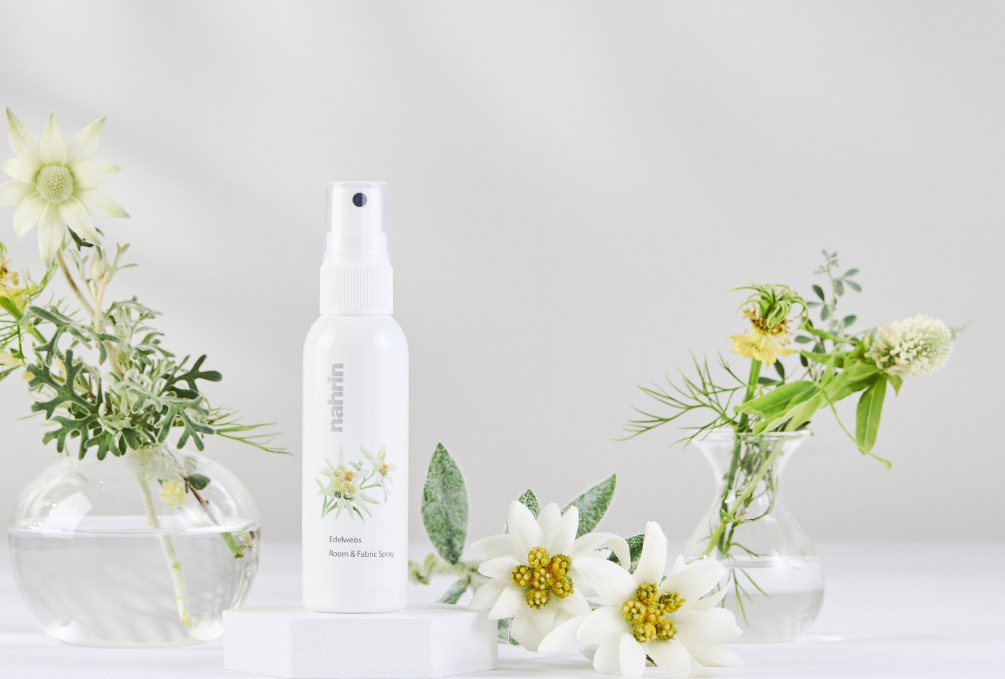 スイスを代表するナチュラルコスメ・ウェルネスブランド「ナリン」の銘品。「エーデルワイス ルーム&ファブリックスプレー」 75ml 2,530円/ナリン