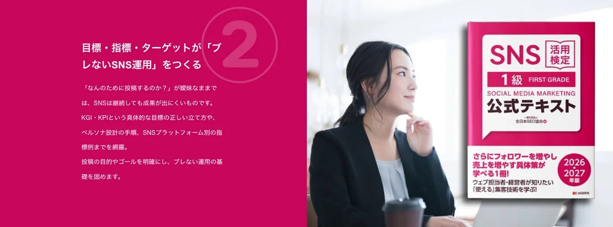 そうした課題に応える形で、Webマーケティング教育事業を行う一般社団法人全日本SEO協会が、新たな資格検定「SNS活用検定」をスタートしました。